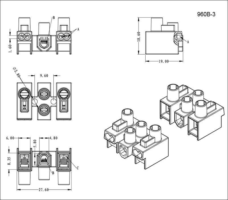 | 中間螺紋端(B孔) | 實心線 | 0.75-4mm2 |