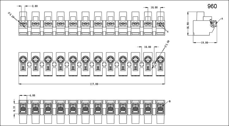 | 螺紋端(B孔) | 實心線 | 0.75-2.5mm2 | AWG 16-20 |