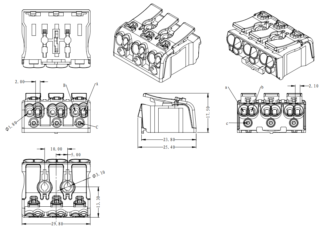 | 工廠側(cè) | A孔 | 實芯線 | 0.5-2.5mm2 | AWG 14-20 |