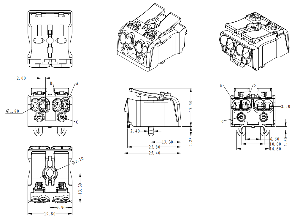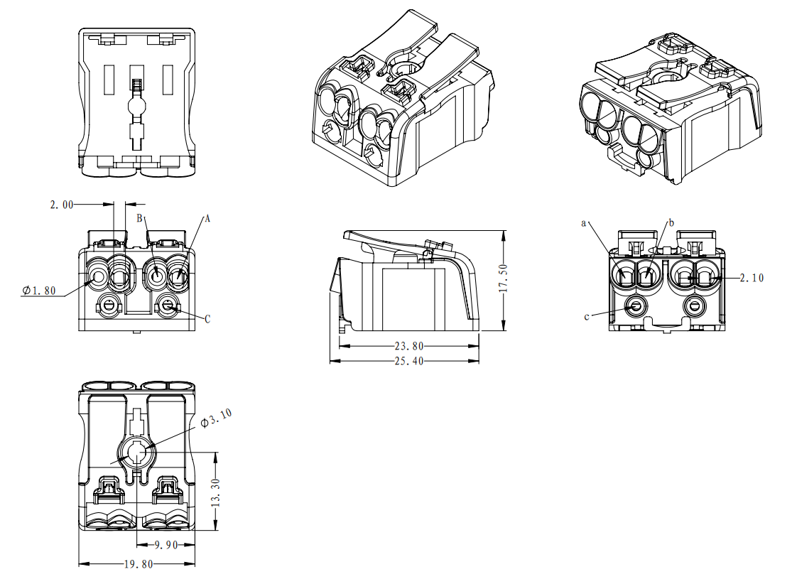 | 工廠側(cè) | A孔 | 實芯線 | 0.5-2.5mm2 |