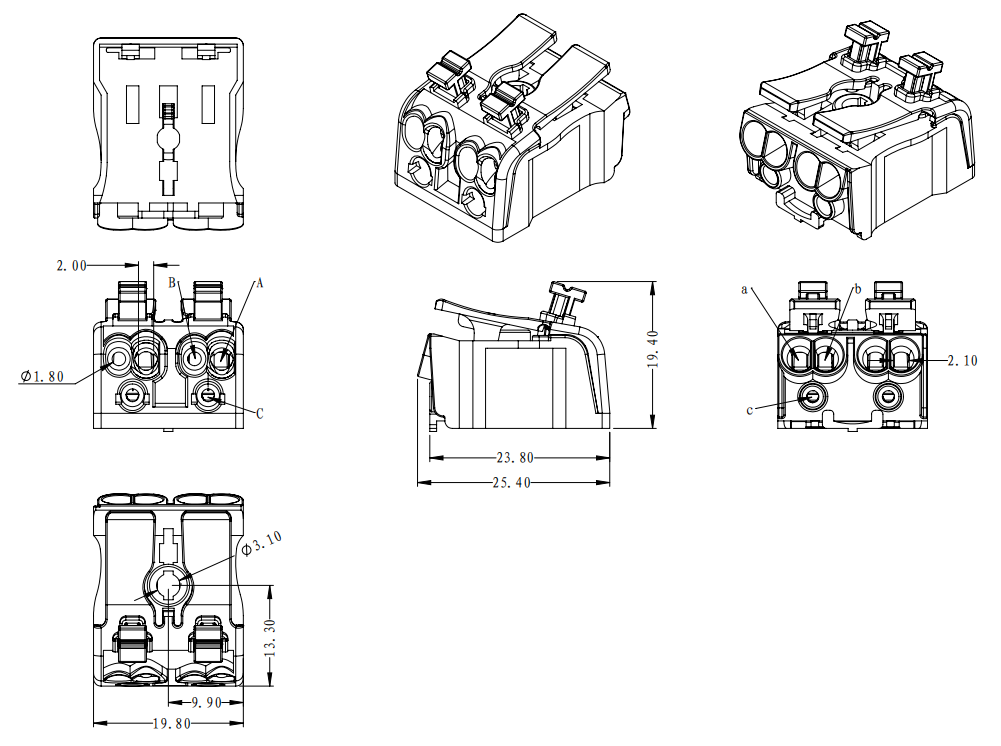 | B孔 | 實(shí)芯線 | 0.5-1.5mm2 |